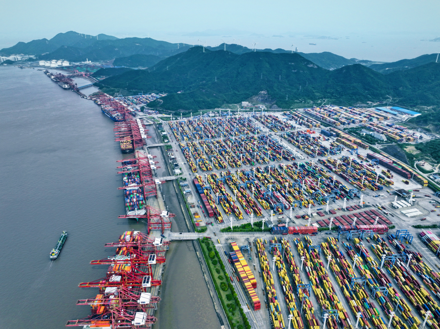 5月7日,宁波舟山港正在进行海铁联运作业 梁力 摄
